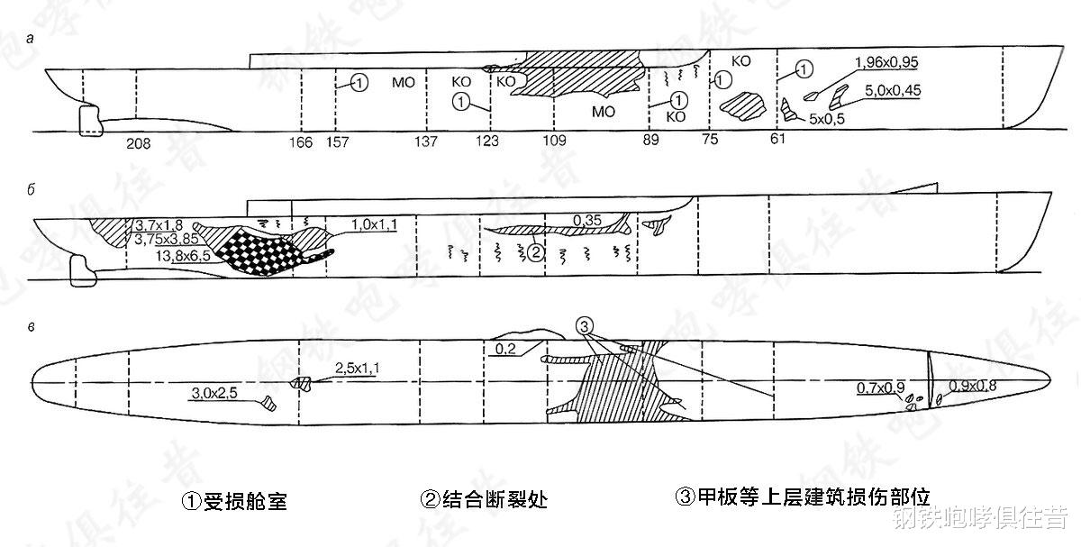 1942.6.27遭德国空军轮番轰炸的【塔什干】受损示意图