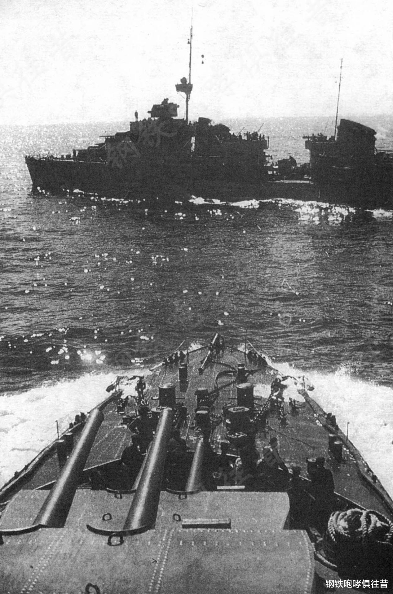 【灵敏】航行在【塔什干】舰艏,可见舰艏已经很低开始上浪
