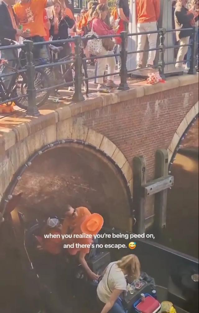 据一位在荷兰的网友说:“这个桥的正中间摆着一堆那种小便池(也不收集,直接排到地上,不知道意义在哪)。我在过桥之前看到地下是湿的,我还不知道这是什么东西,为什么会突然多出来这么多水,还以为是有人把酒洒了,结果到了桥中间才发现小便池...”