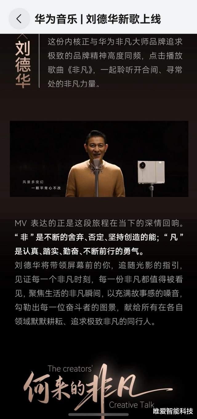 这首歌和华为非凡大师的品牌精神也确实很搭。一个是用40年时间证明坚持的力量,一个是把对极致的追求融入产品细节。“何来的非凡?不过一盏孤灯赴平凡”这句话,对我们这些普通人来说,也是一种鼓励。谁的非凡不是从平凡里磨出来的呢?