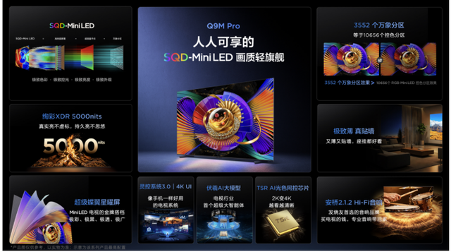 作为本次发布的轻旗舰担当,TCL Q9M Pro最大的跨越在于满血继承了SQD-Mini LED核心技术,将原本只属于机皇的画质体验带入了更广阔的消费市场。