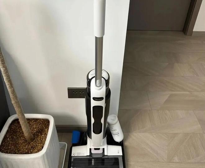 用完后,也不用手洗拖布,因为洗地机自带自清洁的功能,甚至还能烘干,避免了异味。