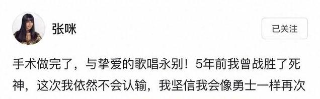 “等我回来。”四个字,黑白分明,掷地有声。张咪手术后的短视频,结尾处这简单的四个字,却像重锤一样敲击着每个人的心房。