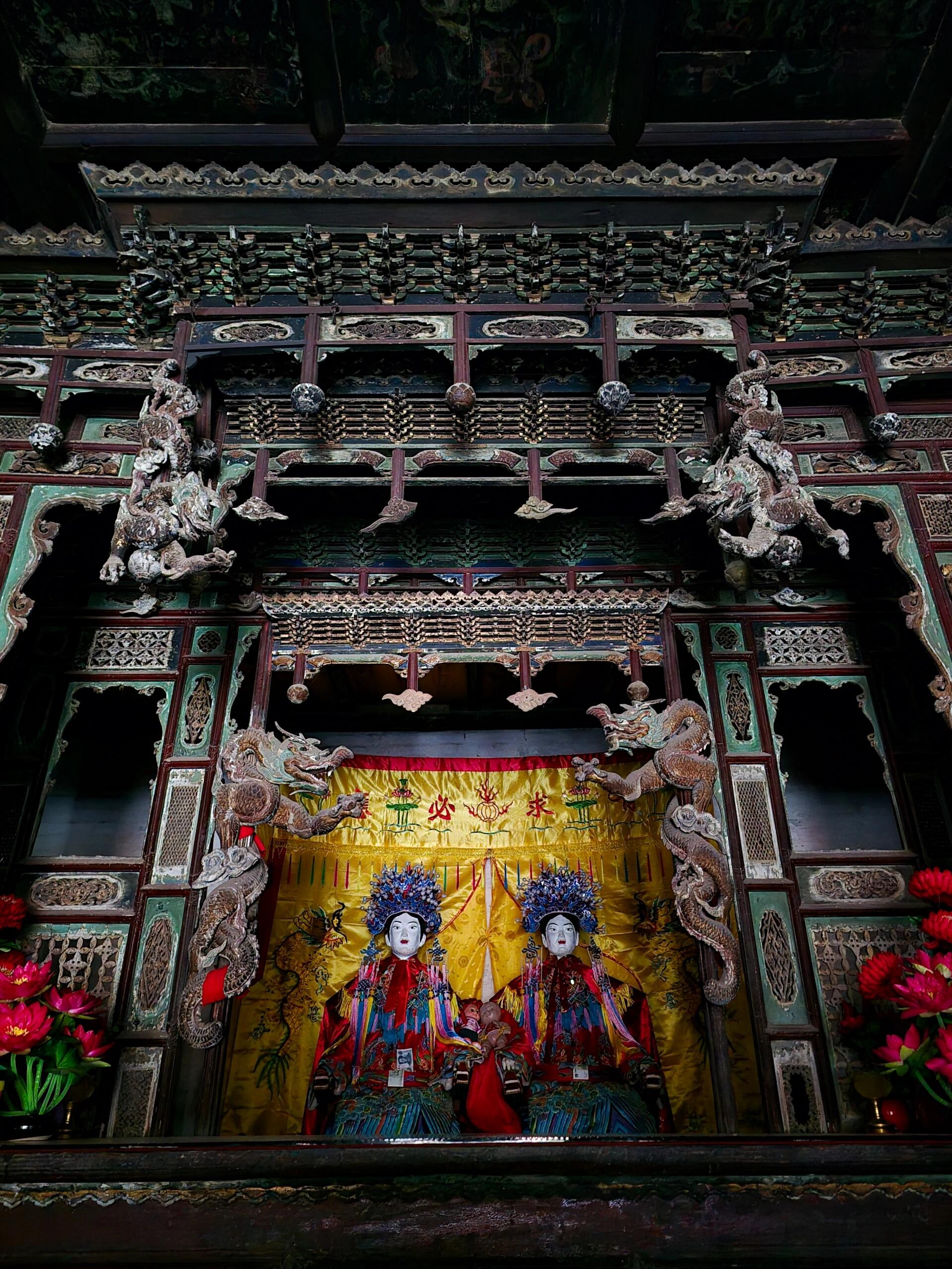 刚进西溪二仙庙的山门,就被戏台顶上的琉璃脊兽晃了眼。那龙吻张着嘴,獠牙尖得像要咬下来,可眼珠子却圆滚滚的,倒像是憋着笑。守庙的老李蹲在台阶上抽旱烟,见我们对着戏台傻看,突然冒出一句:“这戏台是给神仙搭的,底下埋着七块响板,唱戏时声儿能传到后殿。”他用烟杆敲了敲地面,果然有空空的回声,像地底下藏着个大喇叭。