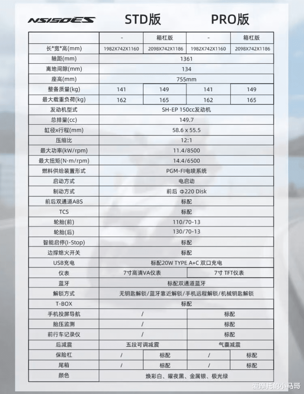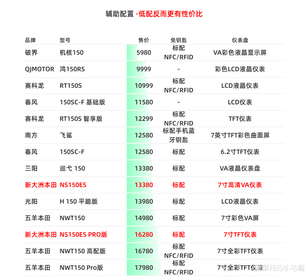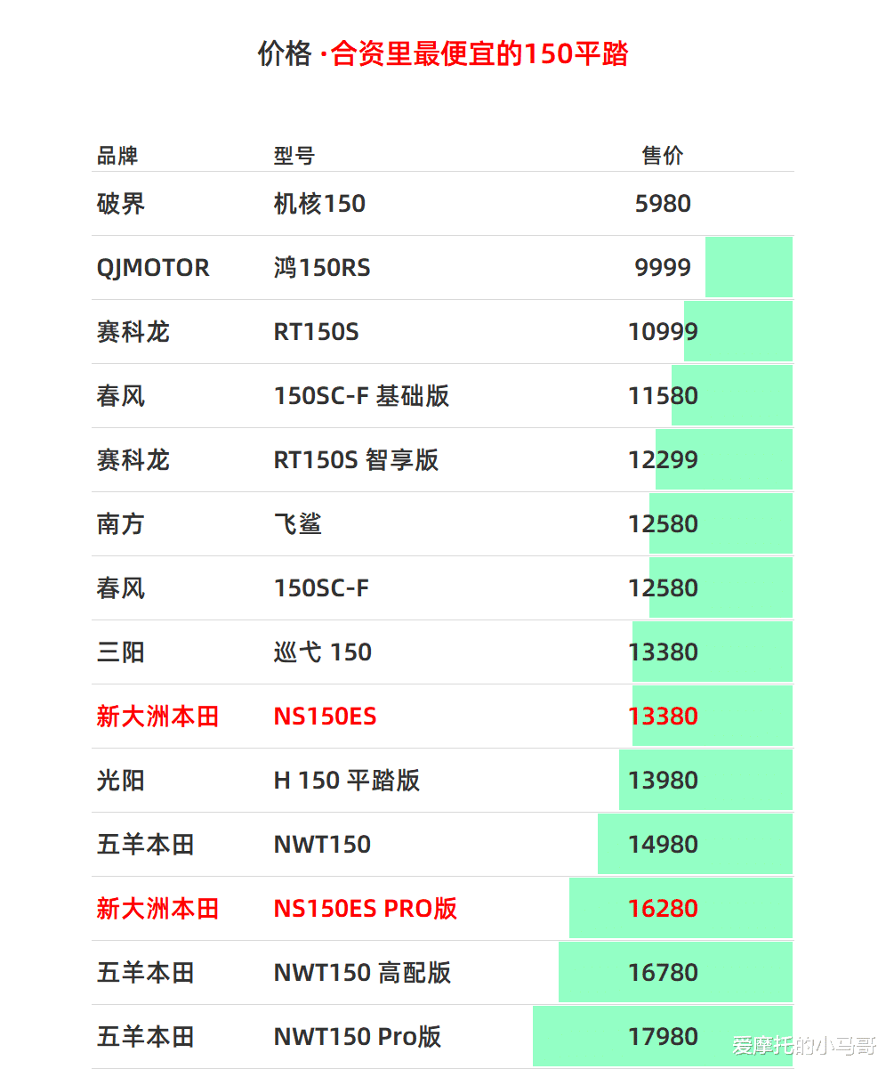 PART.01价格:合资里的价格屠夫先聊大家最关心的定价,这也是NS150ES最核心的卖点。入门版13380元,高配Pro版15780元,同时两个版本都有个箱杠版本,需要再加价500元。这价格,在合资阵营里,优势非常明显,是目前150平踏里起步价最低的车型。但如果把对比范围拉到国产品牌,这个价格优势就荡然无存了。