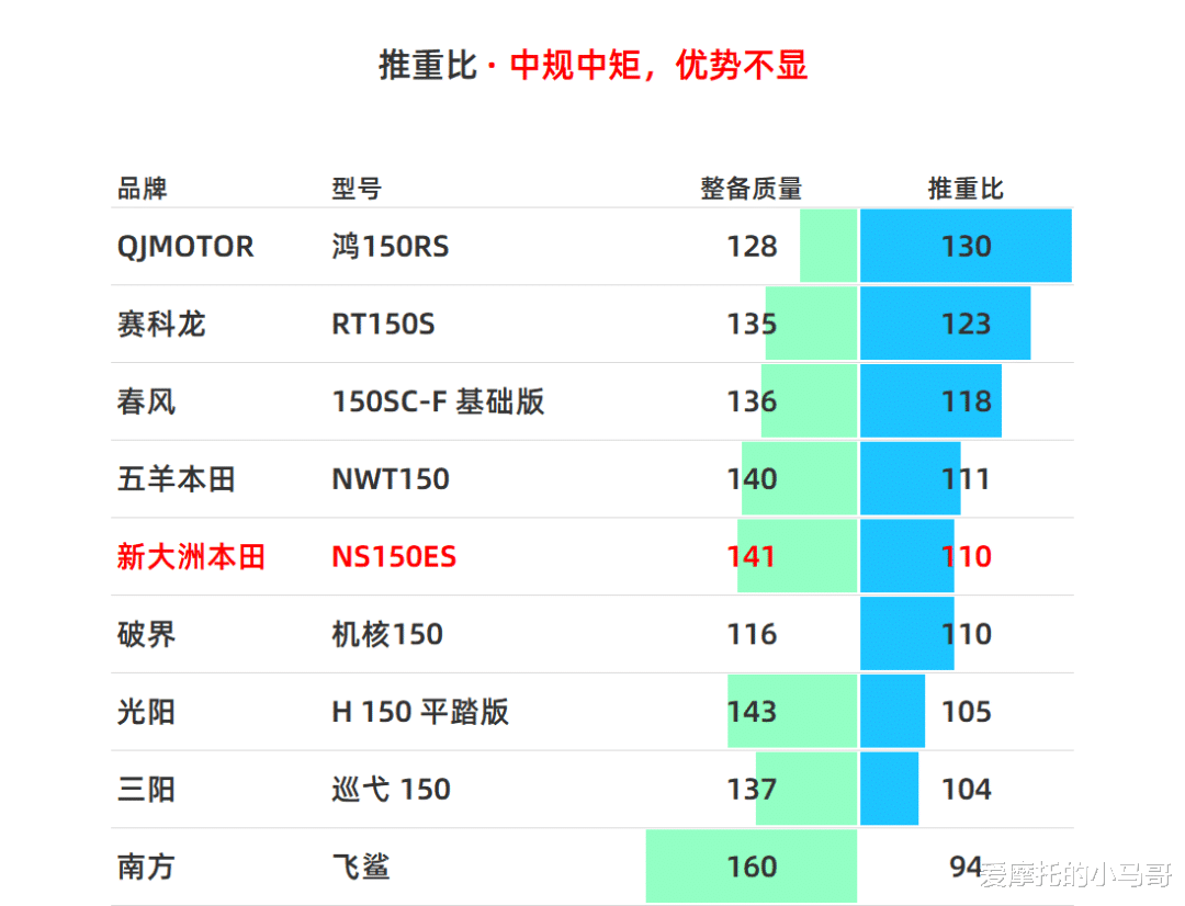 结合它141kg的整备质量计算,它的推重比仅为110Ps/吨,在同级别里只能达到中规中矩的水准,零百加速、极速表现都没有任何优势。