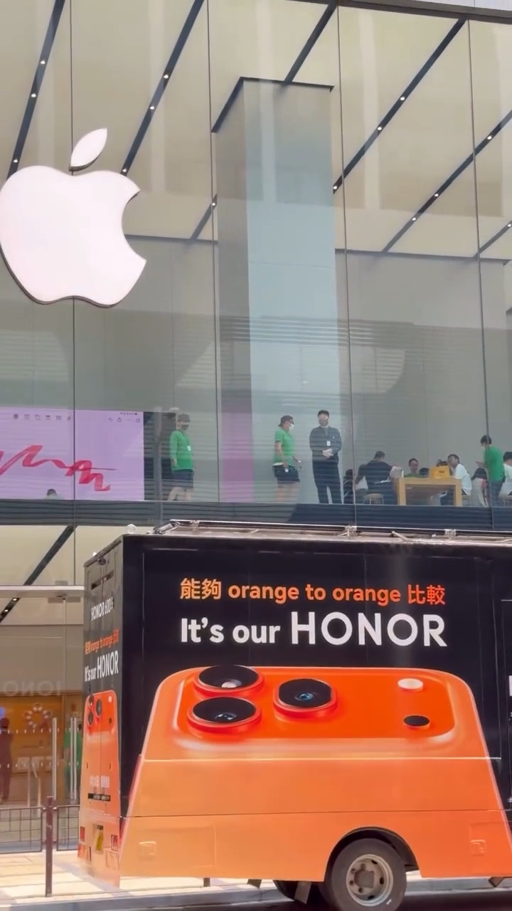 2026年4月16日,数码博主“闪飞”爆料称,荣耀将荣耀600系列手机的宣传车,停在了中国香港Apple Store广东道门口,进行“贴脸开大”式营销。