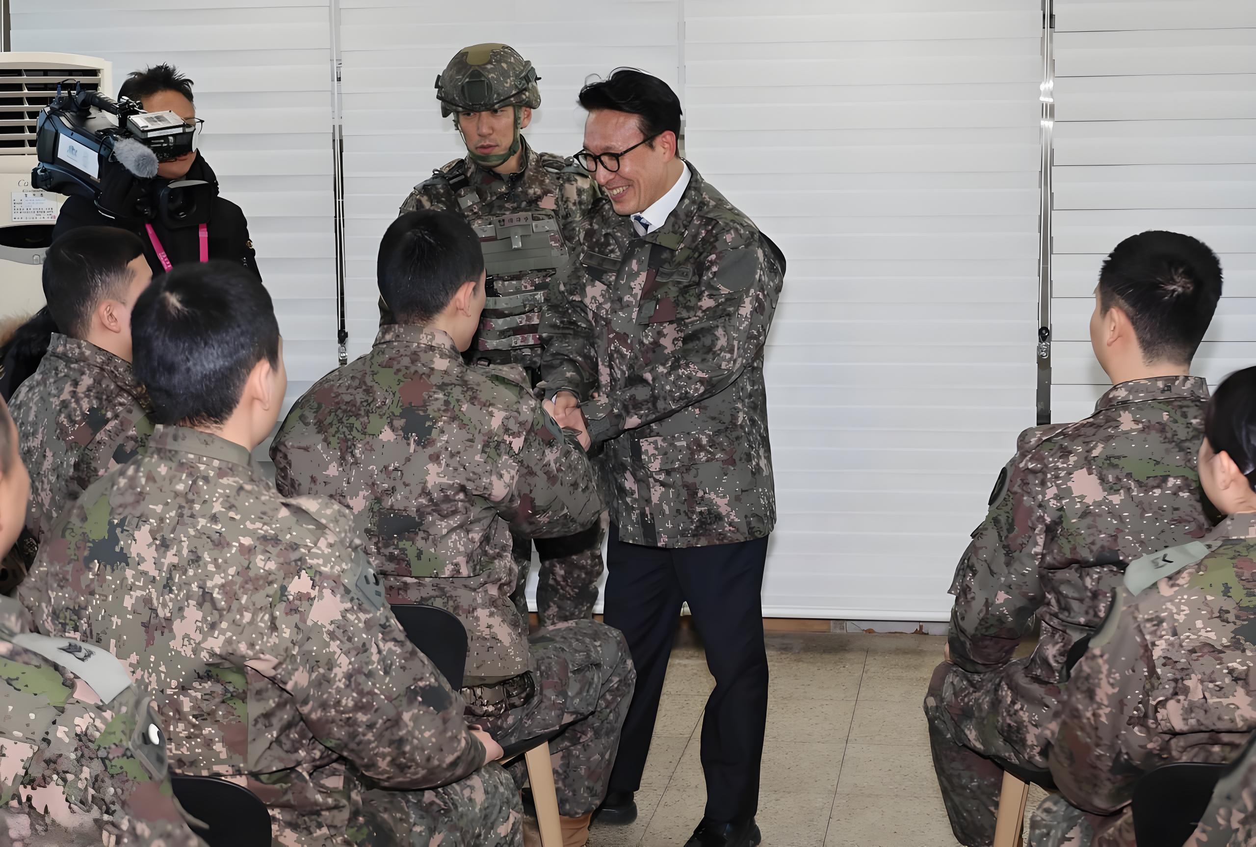 韩国总理金民锡视察一线部队