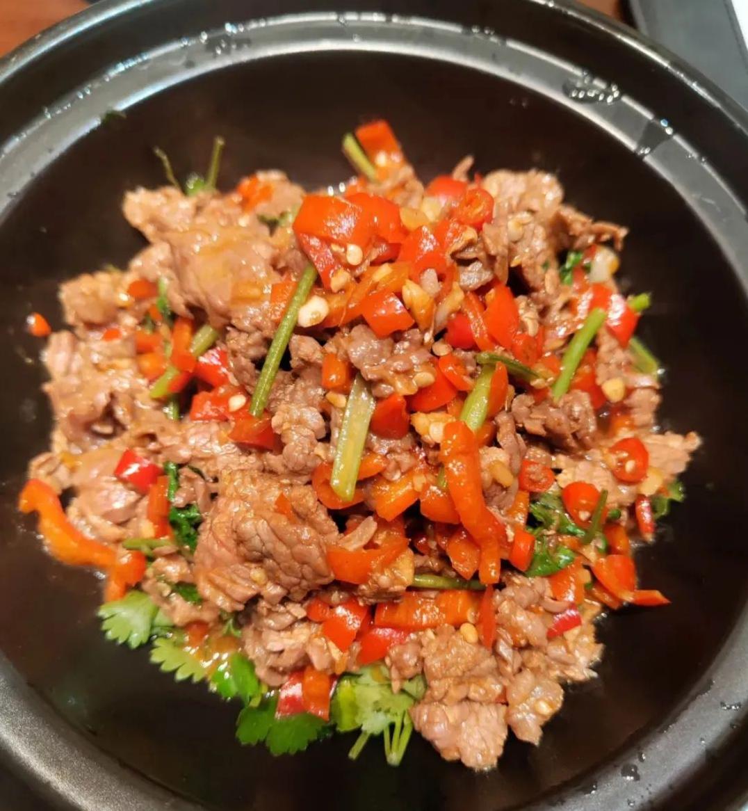 十八秒黄牛肉,江西辣炒年糕,在翻炒中滋味淋漓尽致,柔嫩的肉质和难忘的辣香充盈在舌尖之间,似乎燃烧着不曾想象的美好。