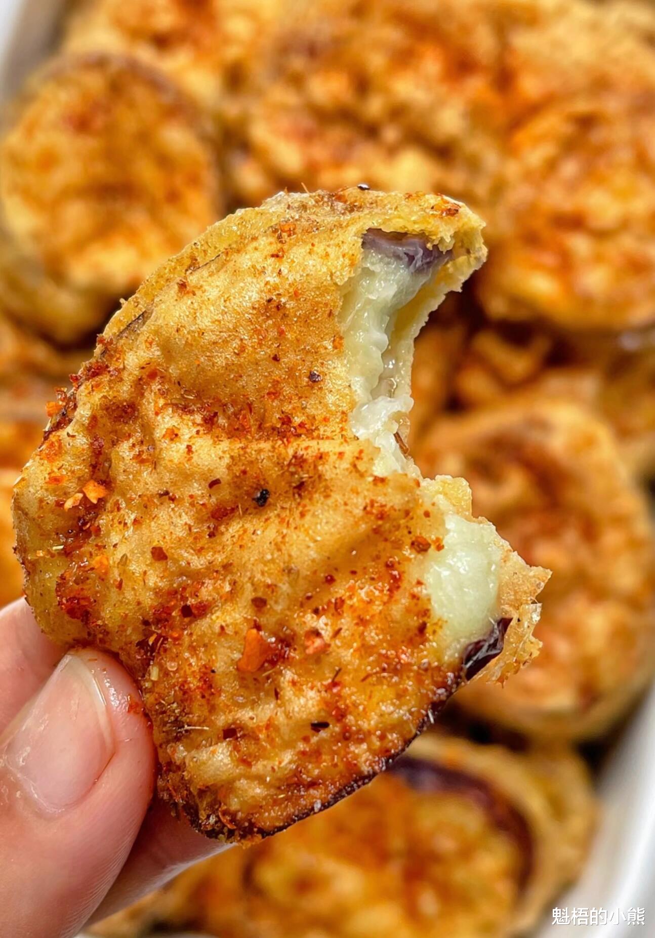 如果你也喜欢酥脆口感和孜然香气,一定要试试这道香炸茄子盒。外酥里嫩,做法简单,一学就会。刚出锅的时候,撒上红亮的辣椒粉,金黄的茄盒堆在小竹篮里,光是看着就让人咽口水。咬下去的那一声咔嚓,是平凡日子里最治愈的音效。