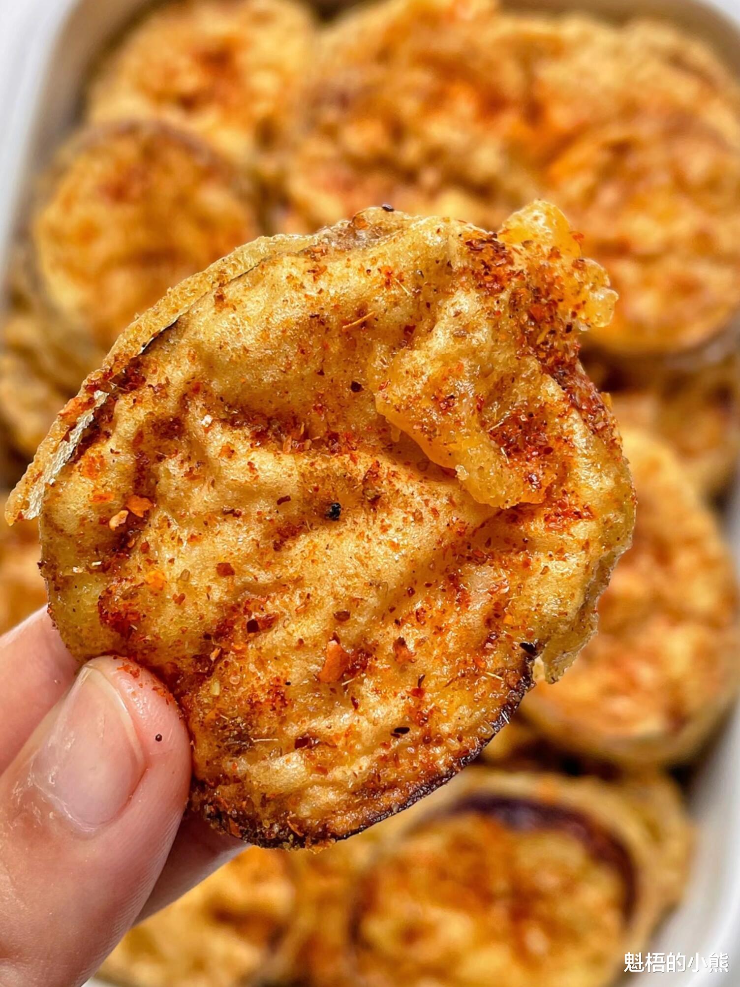 控好油的茄子盒码在盘子里,撒上孜然粉和辣椒粉。孜然粉是灵魂,它的焦香和茄子是绝配;辣椒粉按自己口味放,喜欢辣的多撒点。也可以撒一点椒盐,或者蘸番茄酱吃。趁热吃,外皮酥脆,内里软嫩,茄子本身的清甜和孜然的香辣在嘴里交织,一口一个,根本停不下来。