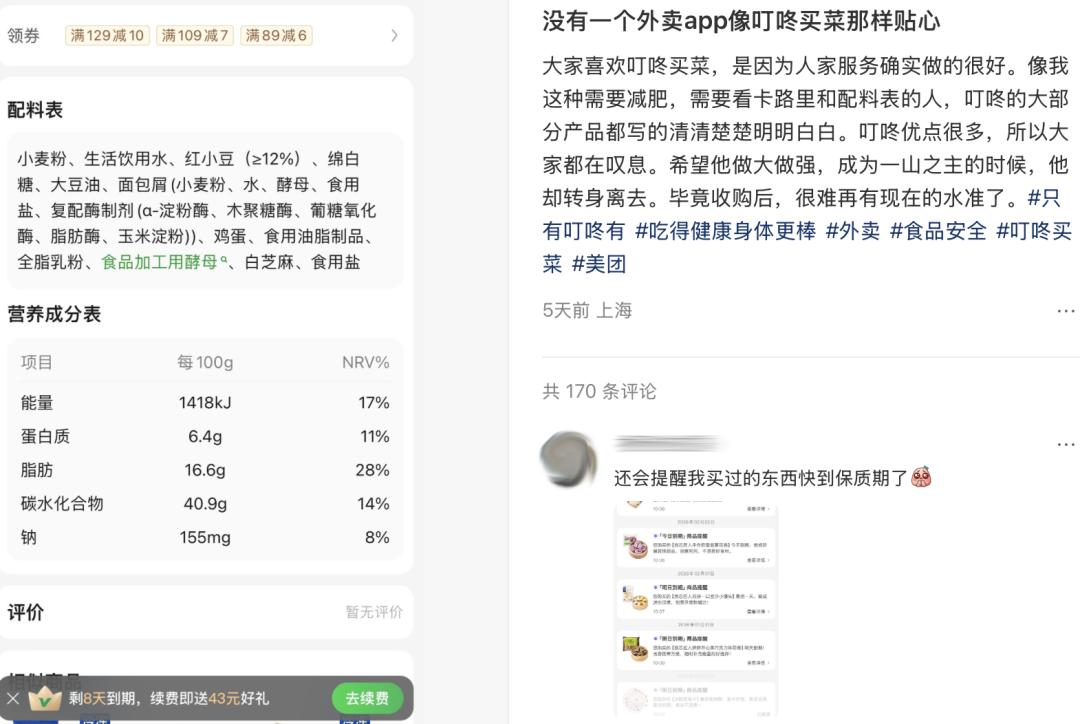 再比如有叮门信徒提到,在叮咚买的鲜货过赏味期了App还会提示「今日到期」,还是首个推出“缺斤少两退钱”服务的线上电商。曾经有生活家买了一斤香蕉到手只有两根,“怎么可能香蕉这么重?”不信邪的生活家一边线上掰头客服,一边下单厨房秤。几经验证后发现香蕉真的有一斤,被总部得知后请求打工人把秤送叮咚,“用来提醒永远不要缺斤少两”。