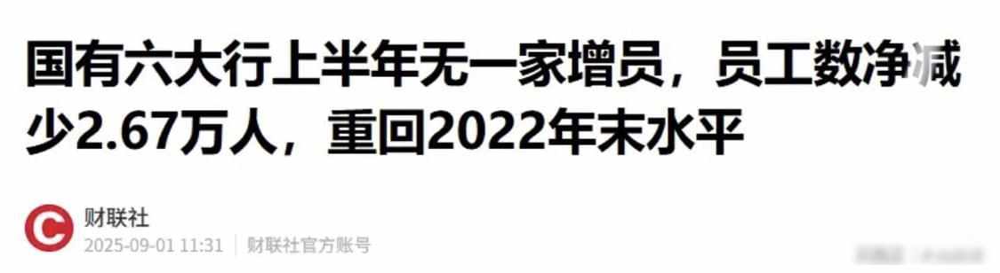上半年六大银行总共减少了超过两万六千名员工,这个人数相当于一个小县城的全部居民数量,这种减少不是员工自己选择离开,而是银行主动进行的人员裁减,工商银行这类大型银行的工资支出占到利润的四成以上,运营成本显得过高,同时净息差已经下降到只有1.42%,银行通过存贷款赚取利润的难度越来越大,人员过多反而影响效率,所以必须精简队伍,现在人工智能技术已经在十八家银行投入使用,原来支行需要三名经理、两名柜员和一名风控人员,如今变成一个人配合人工智能系统来完成工作,人力压缩已经成为一种明显趋势。