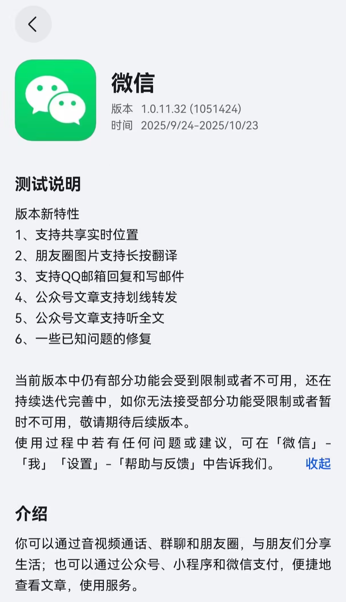 总的来说,鸿蒙版微信的这些新功能真正融入到了我们日常的使用场景里,让社交、出行和办公都变得更简单顺手。各位赶快去华为应用市场-应用尝鲜区升级试试,趁着国庆假期好好体验一下吧!
