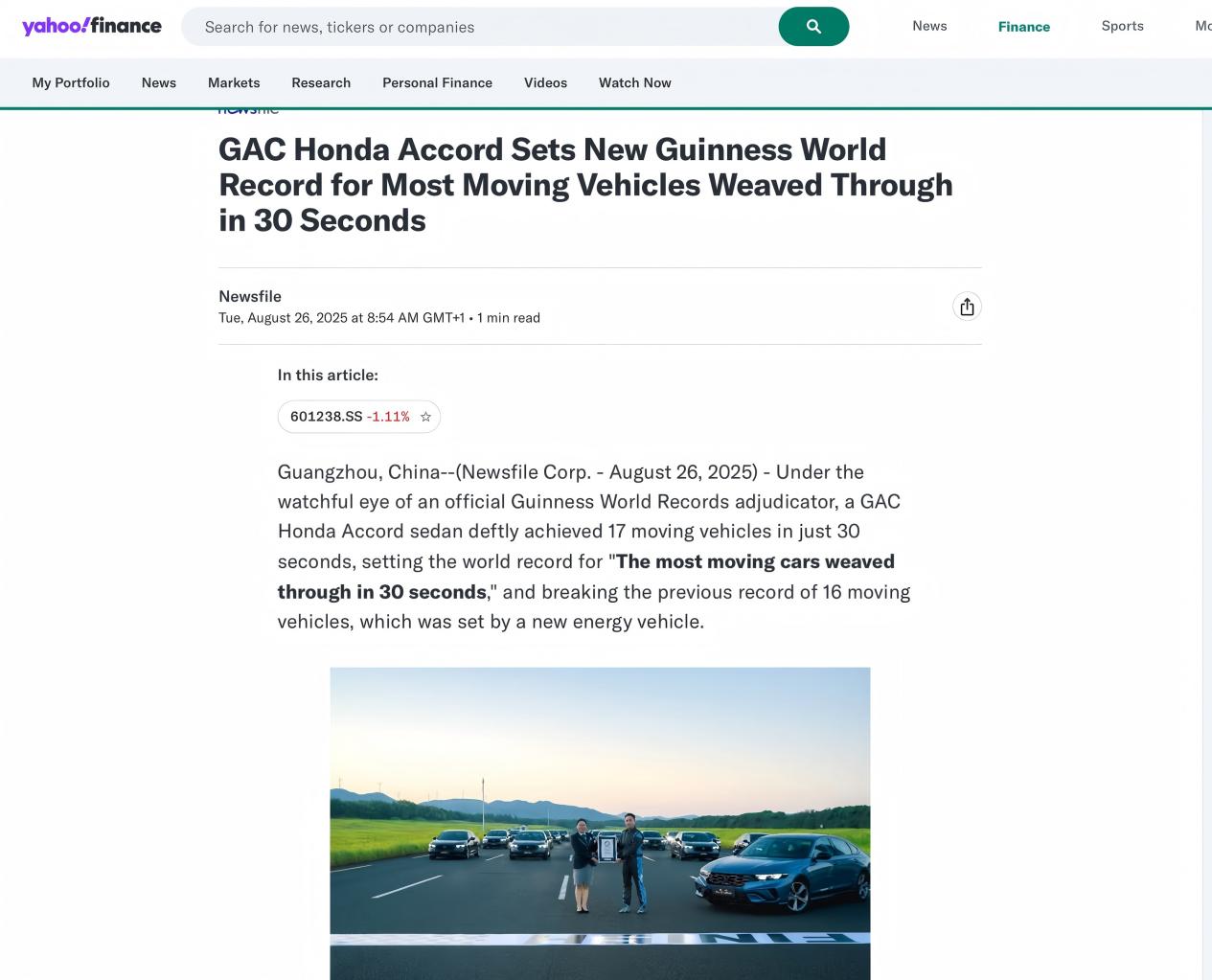 29.196 秒内连续绕过 17 个移动桩,广汽本田雅阁最近用一串惊人数字刷新了吉尼斯世界纪录。这项在安徽宣城完成的挑战,不仅比此前纪录多绕一个桩,更提前近一秒完成,让全球车迷看到家用 B 级车的操控极限。这个成绩背后,是四十多年造车经验的积累,也是对 “好开” 二字最硬核的诠释。
