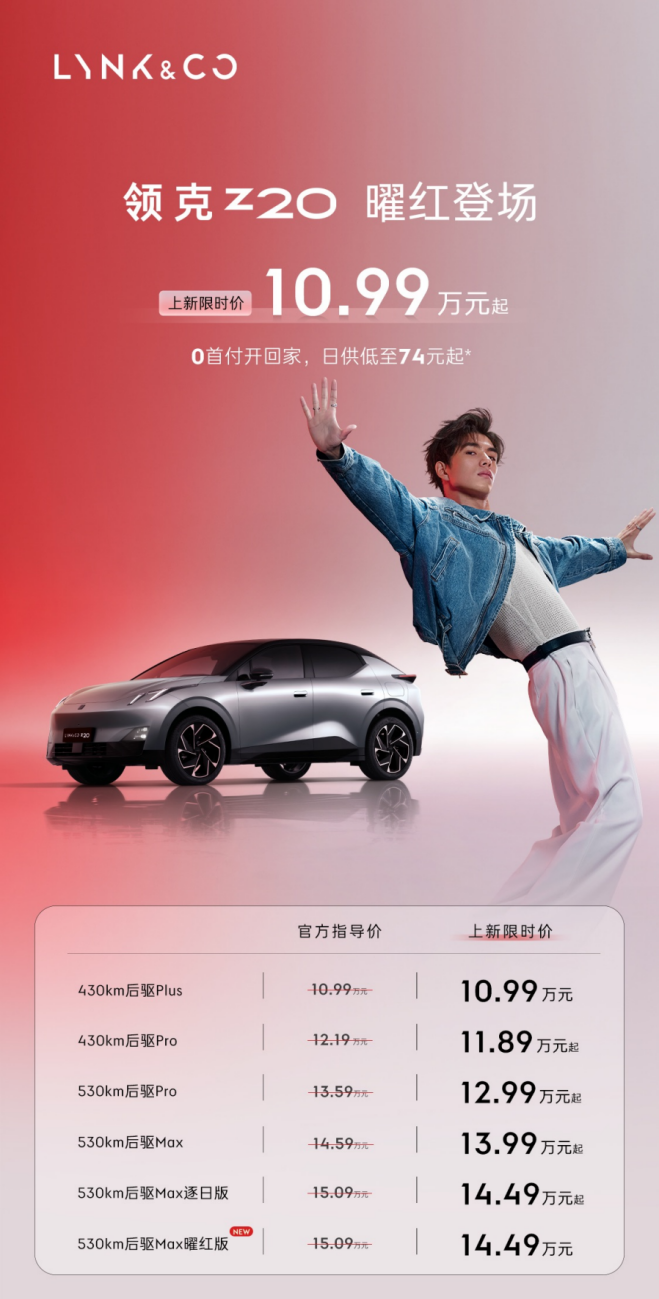 目前,领克 Z20 全系限时售价为 10.99 万起。在十五万级市场中,领克 Z20 曜红版打破了 “高品质 = 高价格” 的传统认知,让年轻消费者能够轻松实现 “红运自由”。它将 “小帕拉梅拉” 同款缝线工艺、仿麂皮顶棚等越级配置融入到亲民的价位中,成为了广州车展上备受瞩目的 “红运单品”。作为今冬的流行色引领者,领克 Z20 曜红版凭借其获得全球媒体认证的颜值和越级配置,在车展上一经亮相便成为了打卡中心,并且还有专属 “红运礼” 的加持,实现了颜值、质感与好运的三重结合。