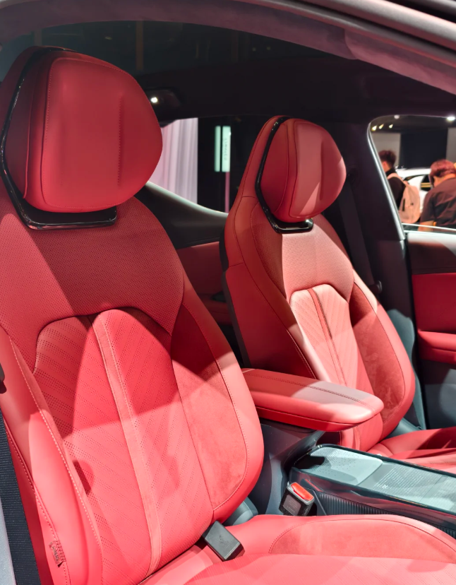 领克 Z20 曜红版的红色内饰设计并非简单的色彩堆砌,而是基于独特的 “红运美学” 理念。其内饰采用了与法拉利、保时捷等超跑同源的设计元素,红色呈现出高级且不俗的质感,打破了传统红色内饰给人的艳俗印象。在工艺方面,车内采用了箭头式打孔设计、仿麂皮顶棚以及金属感音响罩等配置,将超跑级别的工艺融入到大众消费品中,让年轻消费者无需承担高昂的成本,就能拥有一款兼具质感与个性的汽车。