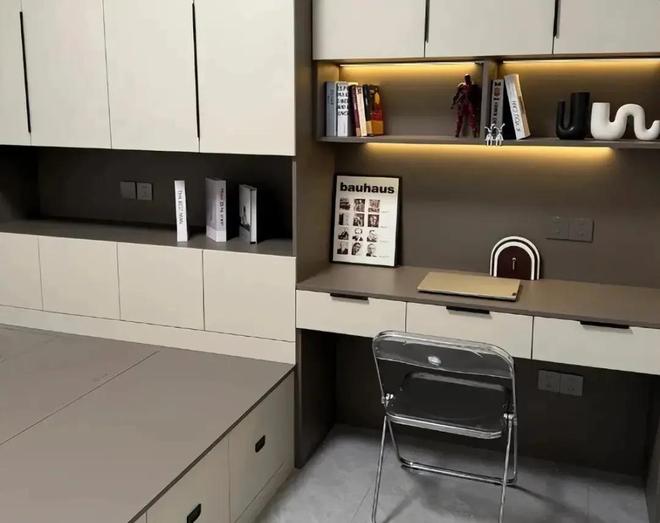 在客卧里靠墙的位置设计出书桌,上面就可以用于学习、办公,甚至是打游戏。