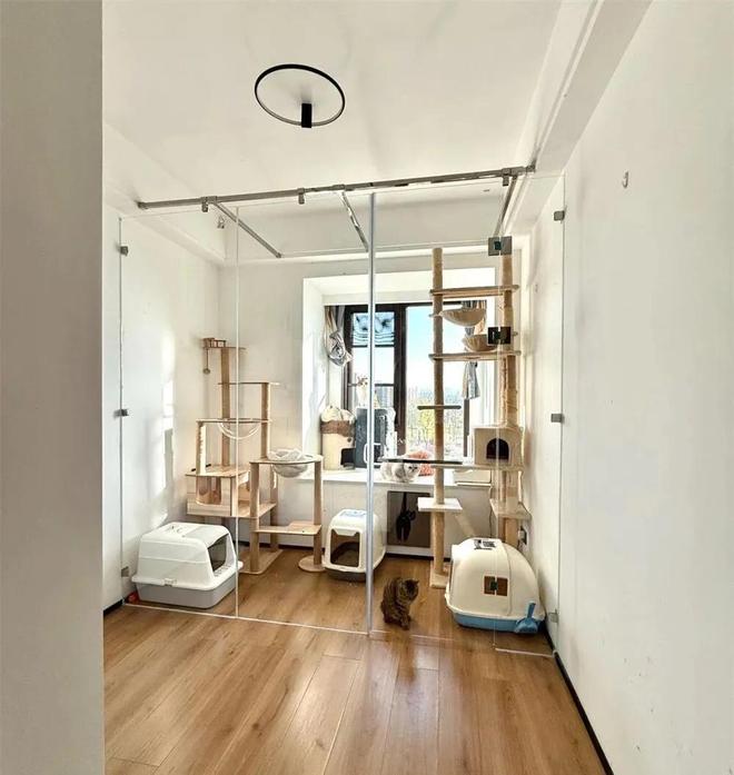 有了这间房间,既满足宠物上天入地的天性,又能保护客厅沙发窗帘,这思路值得每个养宠人参考的!