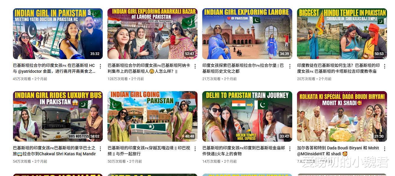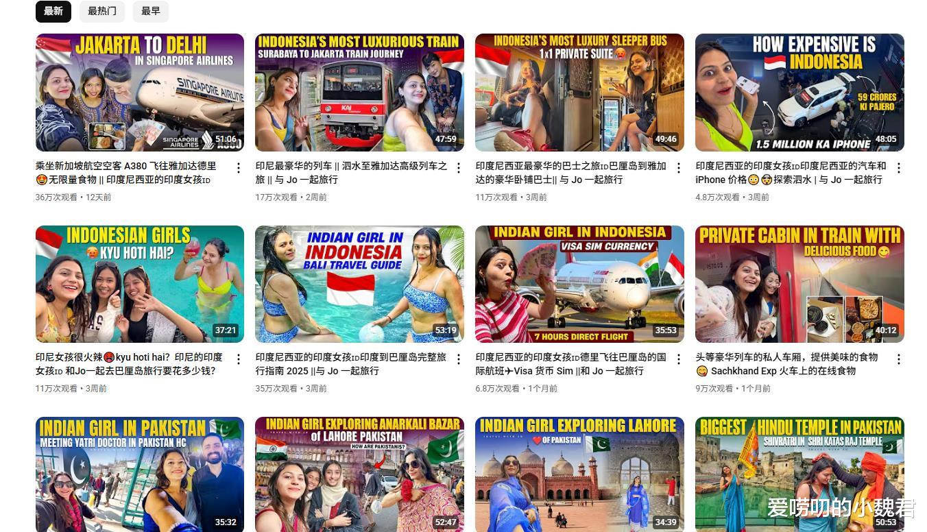 像什么《乘坐新加坡航空空客A380飞往雅加达德里的无限食物二》、《印尼最豪华的列车》、《印度女孩探索巴基斯坦拉合尔PK拉赫尔堡》等等。