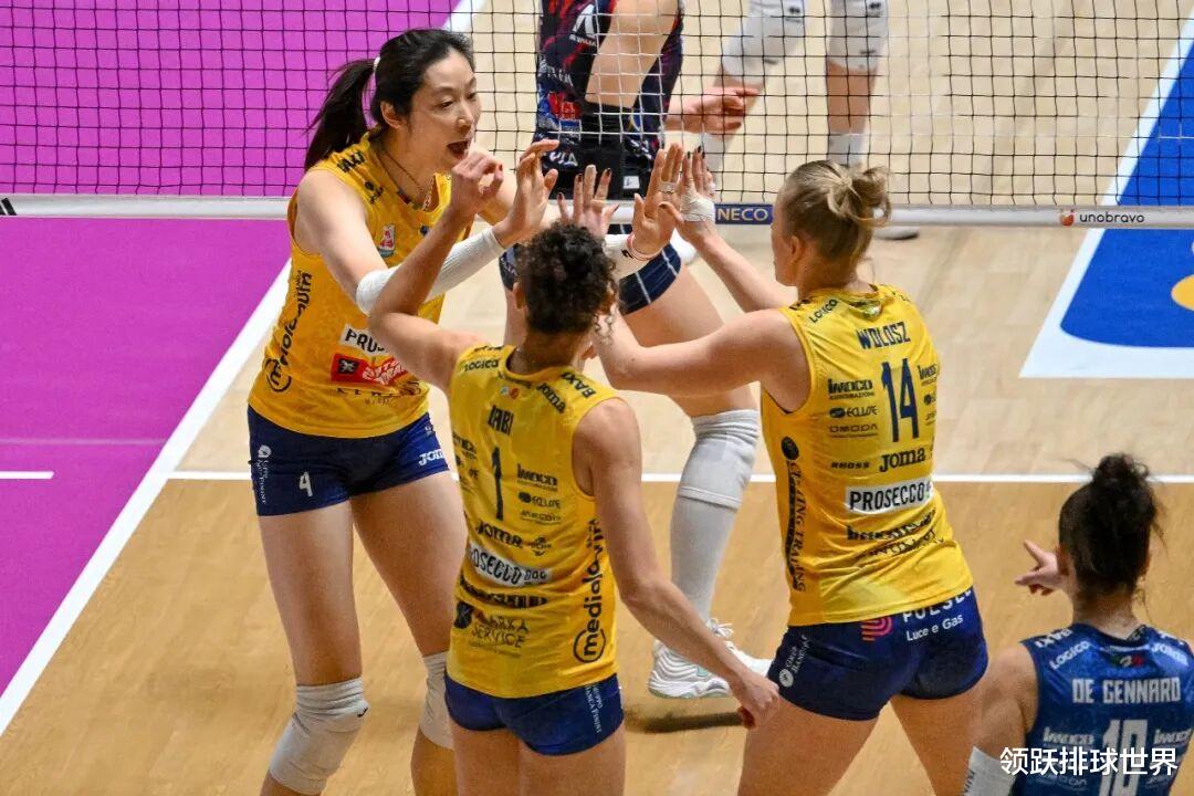 决胜局朱婷打出关键一分。第五局,法尔率先发球得分拉开比分,加比和哈克持续输出,朱婷更是在12-9时打出关键一分,哈克配合输出,将士气推向高潮,最终15-12结束比赛。