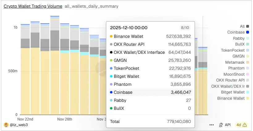 随着meme币热潮消退,高频交易用户开始大批流向费率更低、激励手段更强的交易所系钱包。在交易所的生态闭环面前,独立玩家的生存空间被不断压缩。