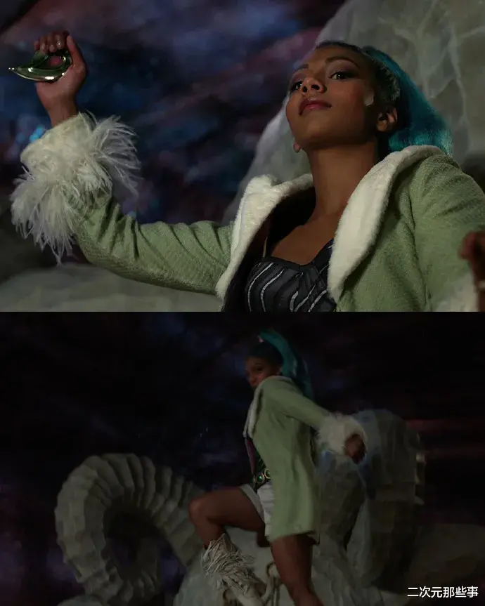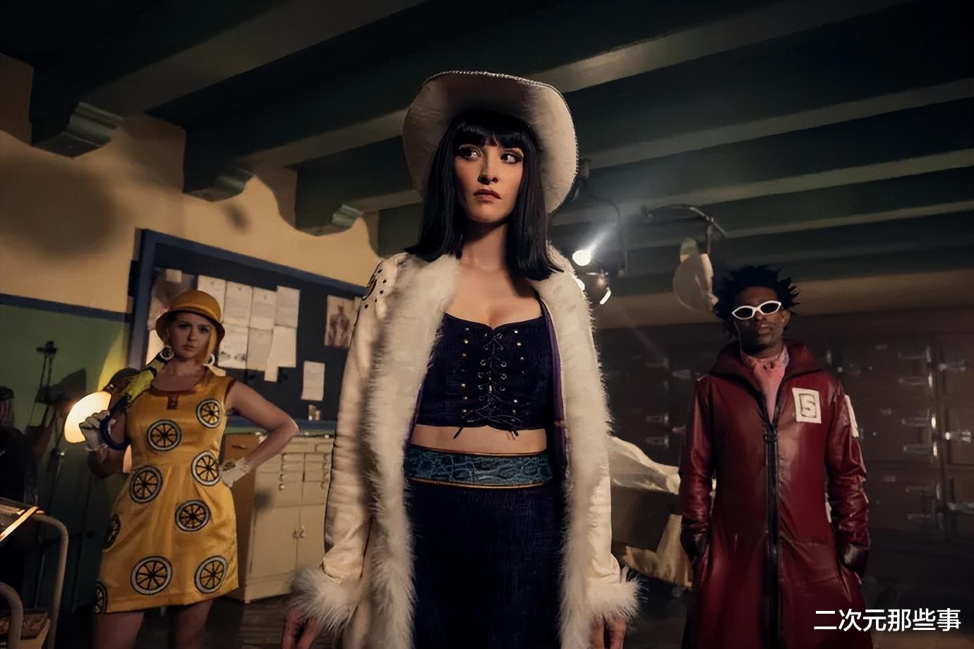 不过虽然真人版的薇薇公主和“Ms情人节”的选角争议拉满,但在看到真人版的罗宾后,所有的失望瞬间被治愈。这个罗宾真的是肤白貌美,颜值直接拉满,一头标志性的黑色长卷发搭配简约又贴合角色的服饰,举手投足间都透着罗宾独有的优雅与沉稳,完全不比动漫里的罗宾差。