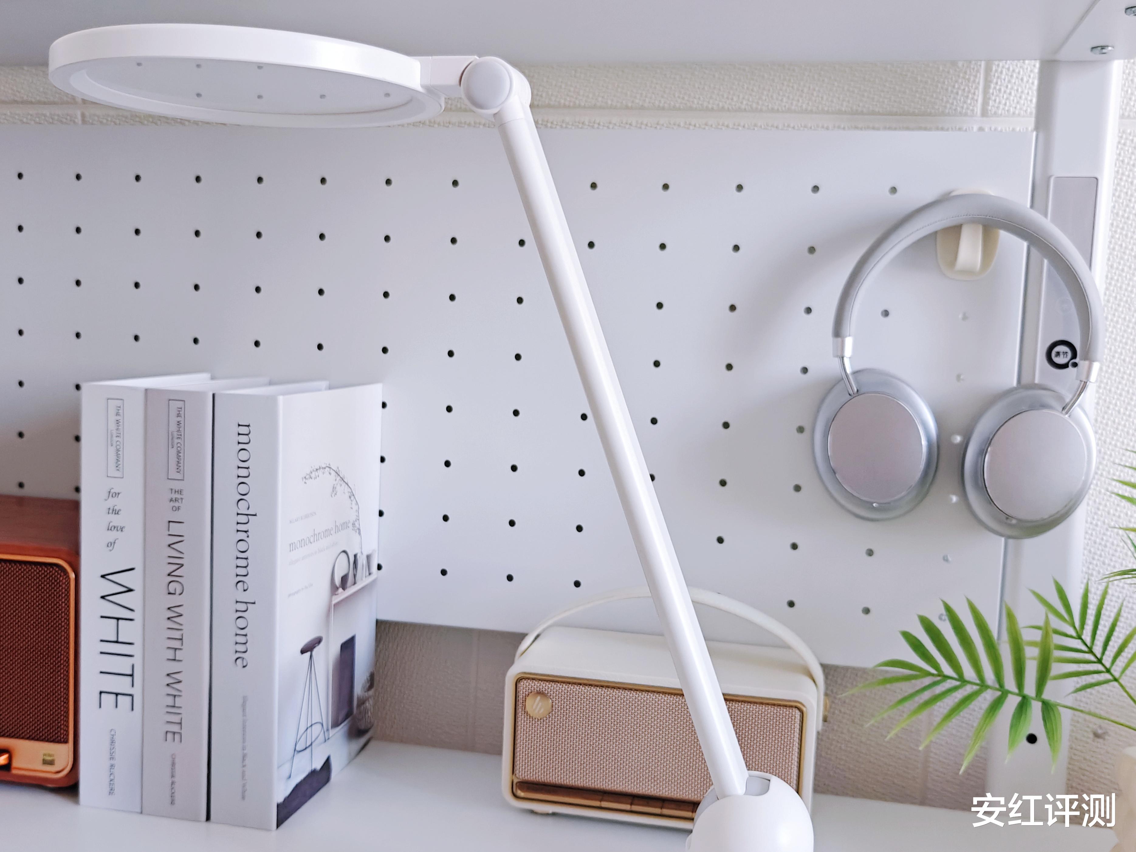 书客SKY护眼台灯采用圆形照明灯头,内侧整体为微棱晶板,有效提升照射面积,同时也保证了灯光柔和不刺眼。