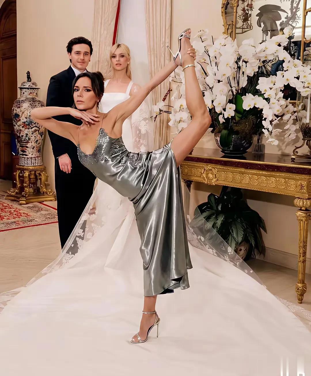 最高潮的应该是婚礼现场。维多利亚挑了一件自己品牌最满意的礼服穿着前去,没想到却被比自己大20多岁的亲家母艳压。在亲家母同色系礼服的衬托下,维多利亚的礼服更像是一件睡衣,妮可拉倒是庆幸自己的婚纱是找华伦天奴设计了。