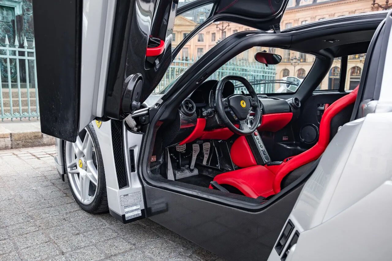 这台2004年出厂的Enzo打破了Rosso Corsa红、Giallo Modena黄、Nero黑等经典原厂配色惯例,身披极为特殊的纽北银金属漆,是全球9台同色车中的一台,更是英国市场唯一一台搭配红色真皮内饰的车型,同时也是全球仅5台“纽北银+红内”组合的Enzo之一,稀缺性不言而喻。