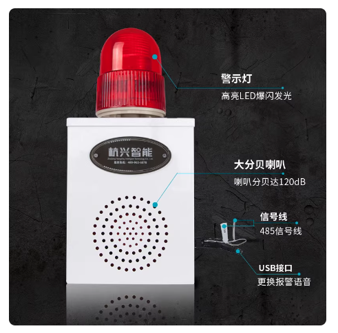 杭兴智能 HXA-B02X以工业级性能、灵活控制、强警示效果与环境适应性,成为起重机械、厂区设备、矿山冶金等场景的理想安全告警设备。