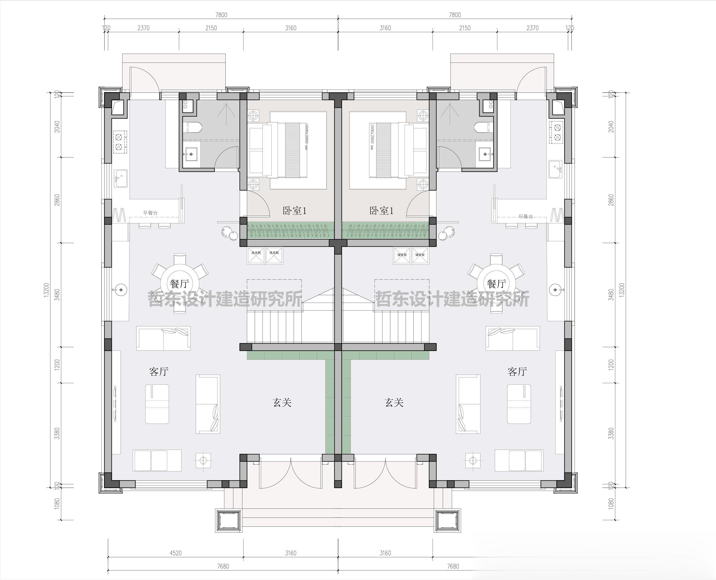 业主核心需求(精准戳中兄弟合建痛点)占地条件:宽16.2米,梯形用地,前双拼户型,后庭院兄弟两家共享出入口:南侧为主要出入口,北侧预留梯形院子(重点放柴火灶)楼层与房间:3层设计,共5-6间卧室,顶层必须有露台功能分区:首层需包含客厅、厨房、餐厅+1间卧室;二层≥2间卧室;三层≥2间卧室外立面:现代简约风格,要求简单、干净、有质感 设计亮点解析(每一处都藏着巧思)结合梯形用地的特殊性,兼顾实用性与颜值,每一处设计都贴合兄弟合建的需求,既独立又共生~