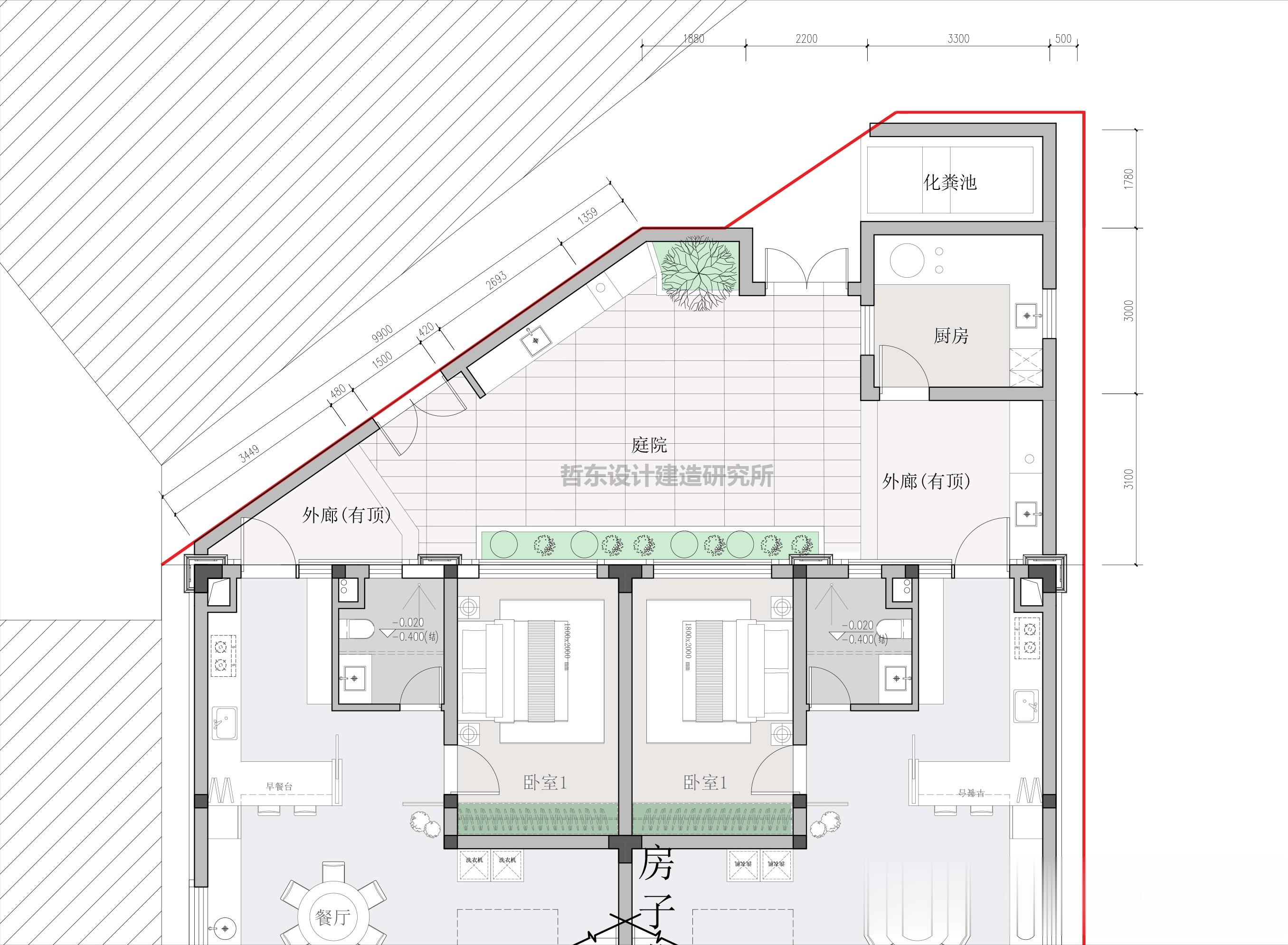 先给大家划重点 这是一套专为兄弟双拼打造的自建房,精准匹配梯形用地,3层布局+5-6间卧室,顶层露台+共享后院,外立面干净高级,看完直接抄作业不踩坑!