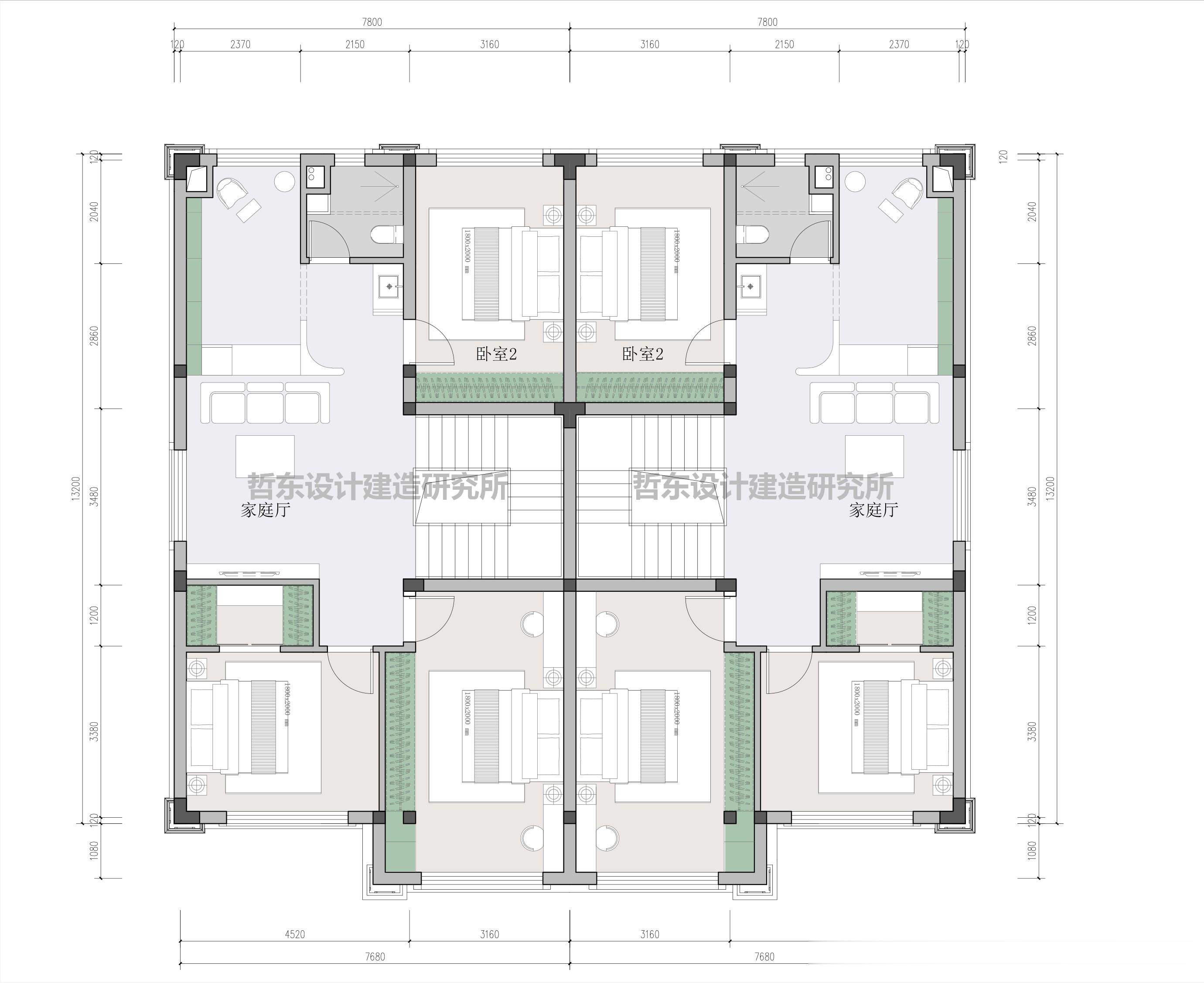 ✨ 二层设计:动线清晰,卧室尺度拉满采用中间楼梯设计,最大化利用空间,避免浪费。二楼南侧规划两间大尺度卧室,采光充足、视野开阔,自带舒适居住体验;北侧设置次卧+独立卫生间+书房,满足家人休息、办公、洗漱的多重需求,中间用家庭厅串联各个空间,动线流畅,互不干扰,兄弟两家各自居住也能保持私密性。