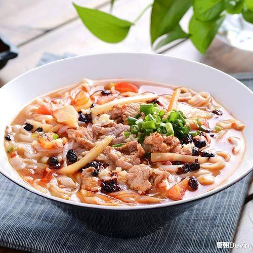 南宁老友粉以其“酸、辣、咸、香、鲜”兼具的独特风味而闻名。其中,酸笋的酸味、辣椒的辣味、豆豉的香味相互交融,形成层次分明又和谐统一的味道体验。汤汁浓郁醇厚,米粉爽滑且富有弹性,各种肉类鲜嫩可口,整体口感丰富多样,令人回味无穷。此外,老友粉还具有开胃解腻、驱风散寒、通窍醒脑的功效,深受当地民众喜爱。