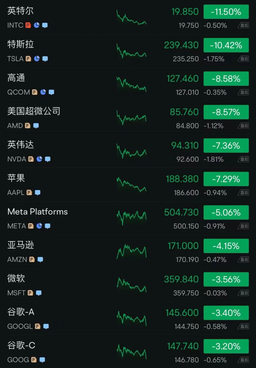 位于曼哈顿下城的纽交所大厅内,往日此起彼伏的报价声消失了。大屏幕上,特斯拉的股价曲线像断了线的风筝般坠落,市值一夜蒸发 896 亿美元,相当于每秒烧掉 100 万美元。苹果公司的市值缩水超过 2000 亿美元,其位于库比蒂诺的总部灯火通明,高管们紧急召开视频会议,讨论如何应对这场突如其来的危机。