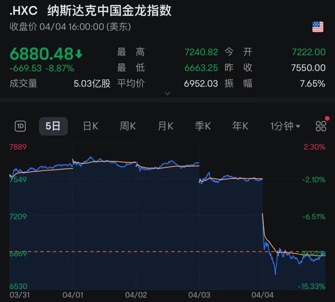 "这简直是 2008 年金融危机的重演。" 一位资深交易员看着不断刷新的亏损数字喃喃自语。标普 500 指数成分股中,93% 的股票下跌,波音公司股价重挫 7.2%,这家航空业巨头刚刚因关税政策失去了中国市场的订单。中概股更是遭遇 "大屠杀",拼多多股价暴跌 12%,在上海陆家嘴的办公楼里,年轻的员工们盯着电脑屏幕,默默计算着自己的期权价值缩水了多少。