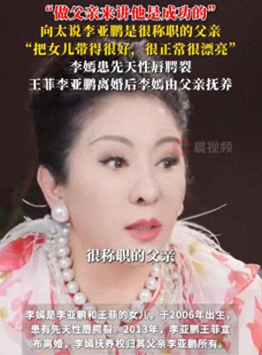 在11月10日发布的视频中,向太陈岚公开称赞李亚鹏,指出他独自抚养女儿李嫣长大,并陪伴她完成唇腭裂手术。
