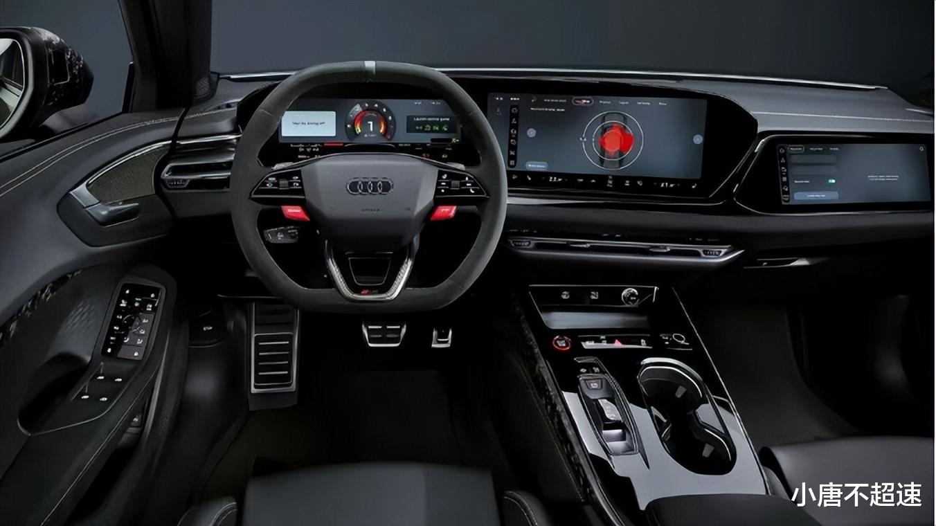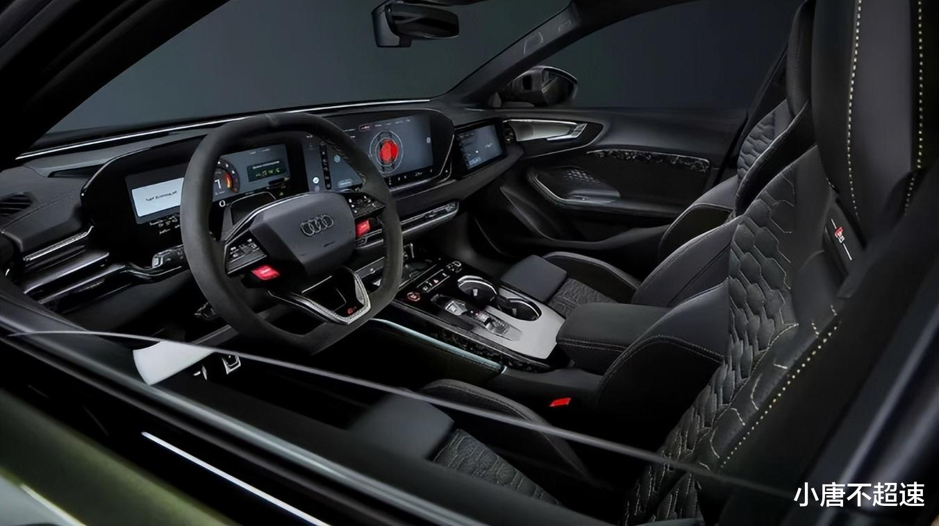 内饰部分,新一代RS 5采用三屏布局;座椅为一体化运动设计,带有RS标识;前排座椅采用金色缝线,后排为红色缝线;方向盘采用平底设计,带有红色RS快捷按钮。
