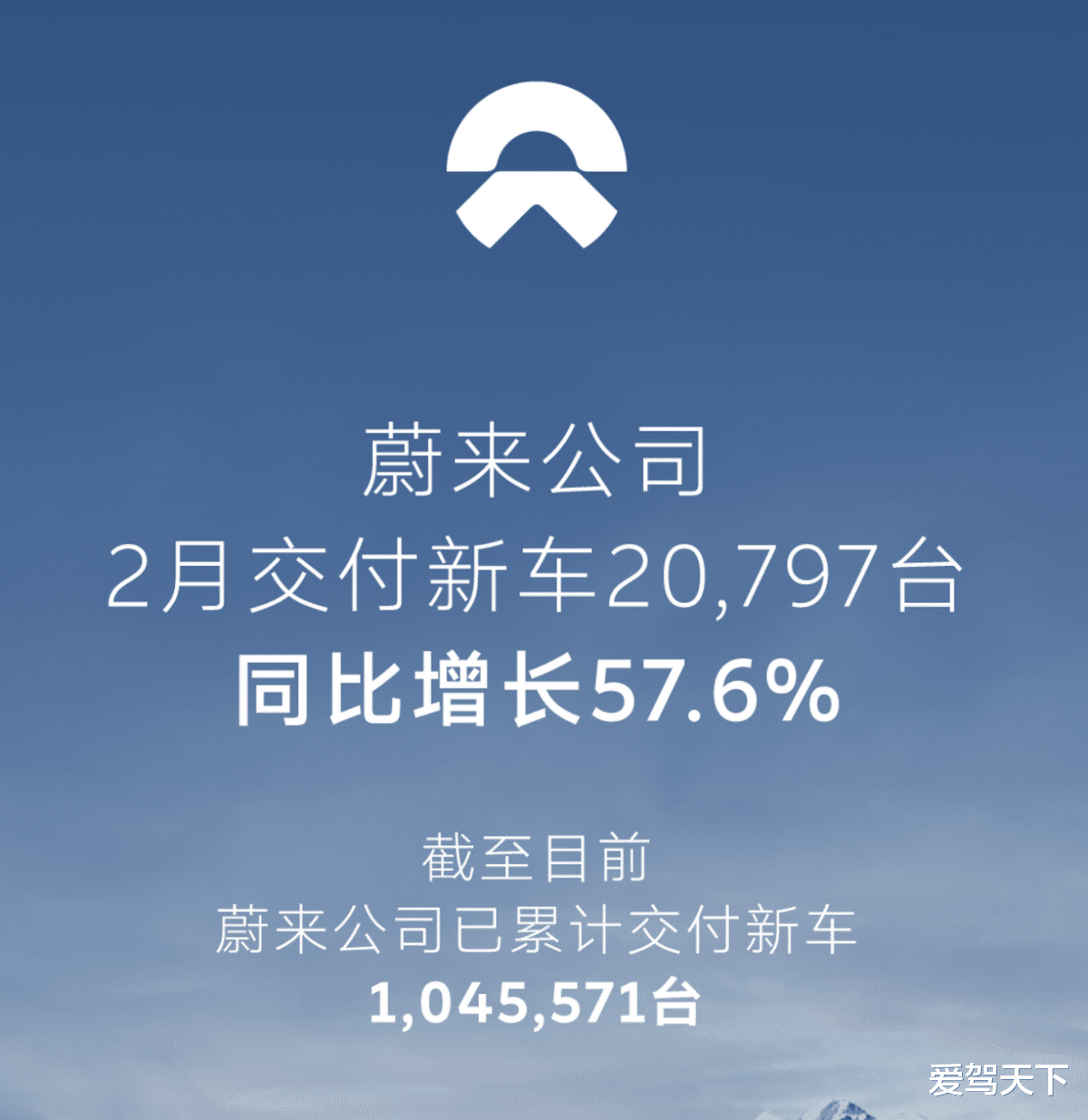 蔚来汽车2月交付量达20,797辆。与1月的27,182辆相比,虽环比减少了6,385辆,但依旧守住了2万大关;与2025年同期的13,192辆相比,同比增长57.6%,增幅超过五成,说明这份成绩单还是具备一定的含金量。