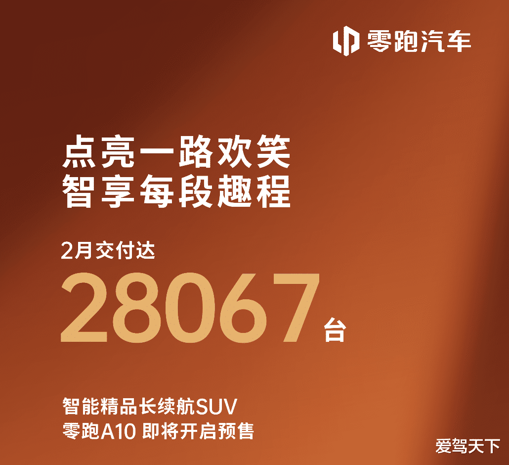 零跑汽车2月交付量达28,067辆,同样从3万+大关回落至2万+阵营。与2025年同期的25,287辆相比,同比增长约11%,在假期淡季中仍保持了稳健增长。