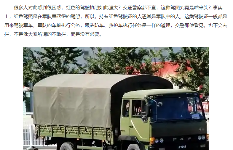 如果你想拥有红色驾照,你必须首先拥有军队的身份,如果你想考红色驾照,首先你必须是一名军人。由于红色驾照的准驾车型大多数都是特种车辆,因此相关部门对驾驶员的驾驶技能要求很高,特别是在军队,所以你必须有良好的体力,否则你无法应付庞大的任务量。因此,如果你想要一本红色的驾驶证,你必须满足众多苛刻的条件。可以说,对于普通人来说,拿到红色驾照是极其困难的,正所谓拥有红色驾照的人不简单。