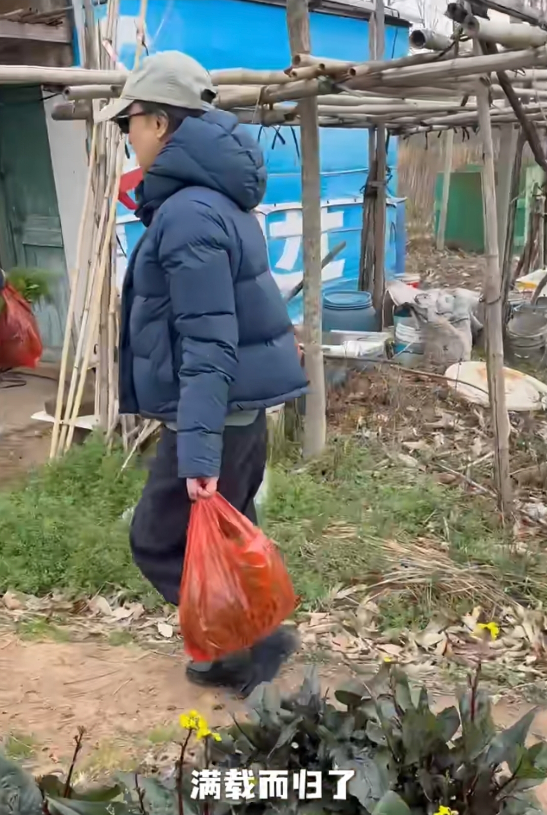 周迅去乡下是为了摘掉新鲜蔬菜,一行人去了农家小院,周迅戴着帽子口罩,穿着件藏青色棉服,气质看着确实老了。