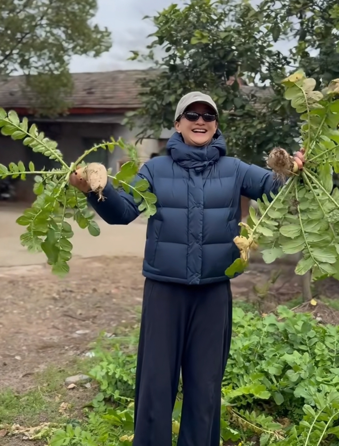 周迅个子不高,但干活也很是麻利,不戴手套在地里拔蒜苗,这一幕真的很接地气,还徒手拔萝卜,萝卜叶上有小刺刺,周迅也不怕,一拔一个准。