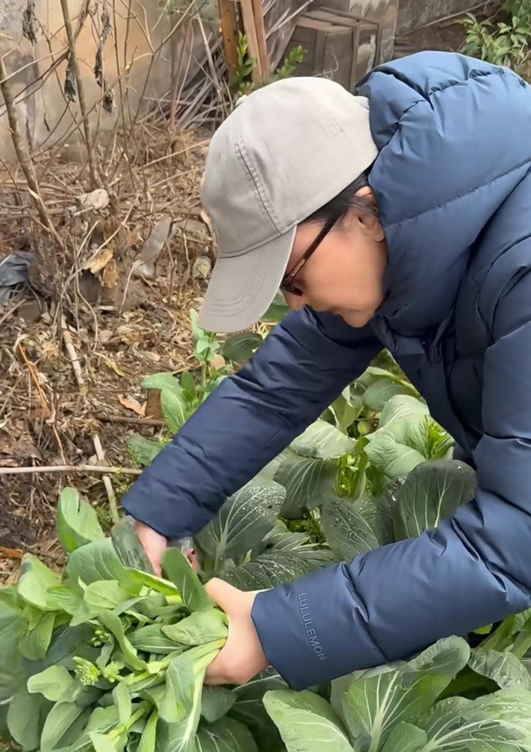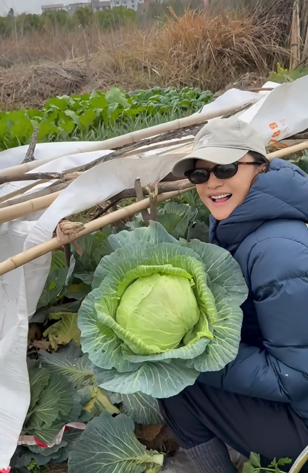 周迅一边摘地里的菜心,一边还想着到时候给同学分分,她曾公开表示过自己是素食主义者,很少吃肉,所以大部分青菜在她眼里都是美味,尤其是这样刚从地里摘下来的青菜,更是难得。