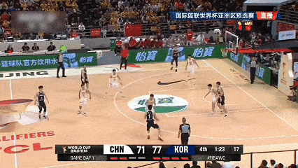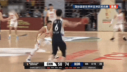 韩国队在转换进攻中掉球从而错失良机,5号边俊亨随即将球传给篮下队友,后者观察到跟进的李贤重快速出球;接球后,李贤重先是以投篮假动作点起胡明轩,随后炸球衔接后撤步迎着陈帅澎将球投进。