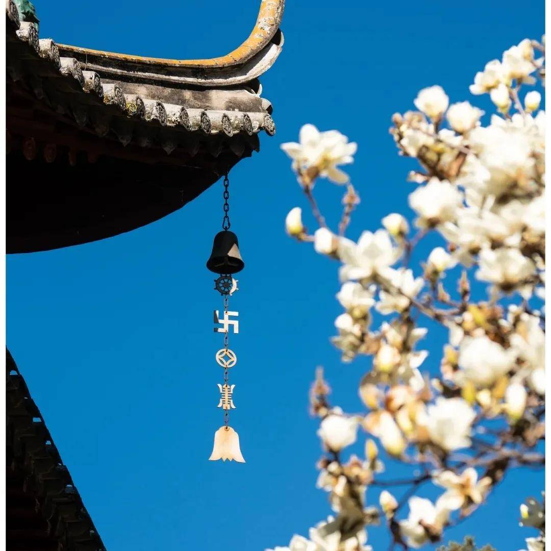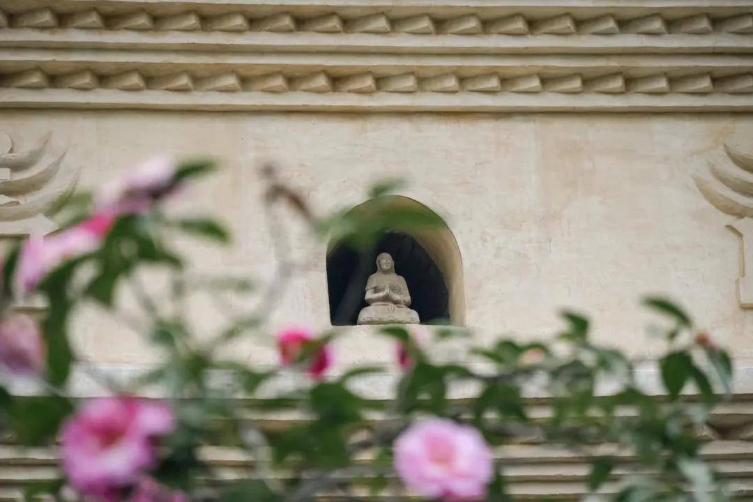 藏在闹市旁的一方静谧,这里没有成片花海却有着触手可及的春日小确幸。围绕古塔的小园子里几株山茶开得正盛,玉兰虽已开始飘落,却为中式长廊添了几分落英缤纷的意境。