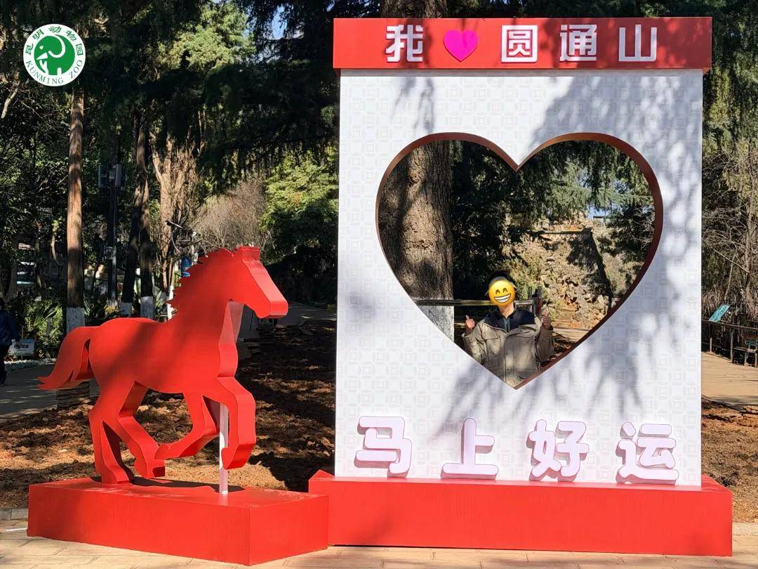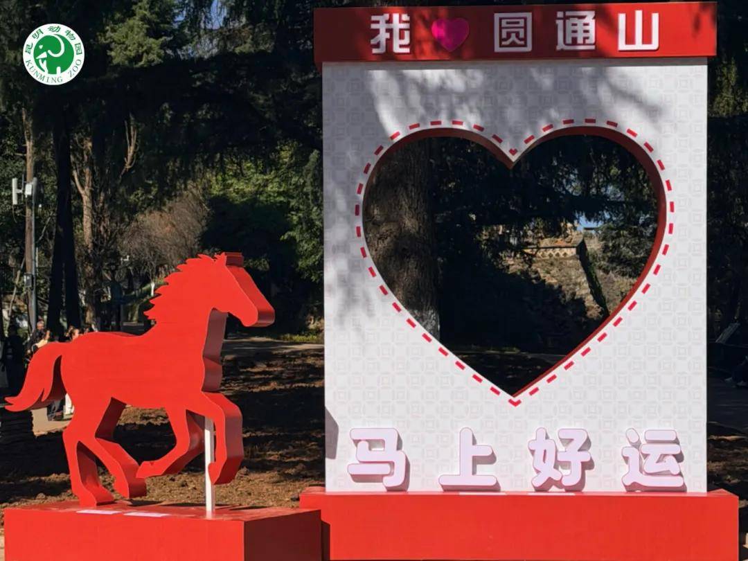 冬日的圆通山,已经悄悄染上了新春的气息。昆明动物园东门广场的马年主题大型互动美陈1月31日起正式对游客开放。