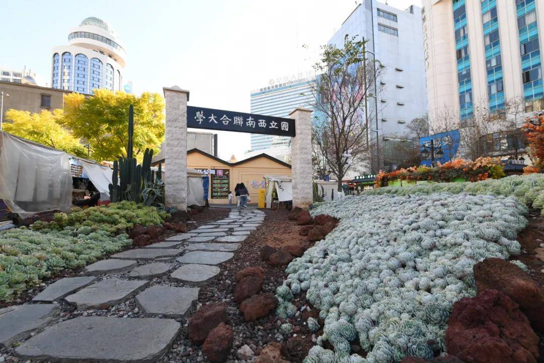 位于正义路与庆云街交叉口(近昆明老街,步行可达),由多肉植物打造的沉浸式公园,冬季温差大,多肉出状态更艳丽,随手出片。标志性的西南联大校门复刻、云南陆军讲武堂黄门、滇越铁路米轨小火车与多肉花海同框,兼具自然与人文感,是打卡拍照的绝佳场地。