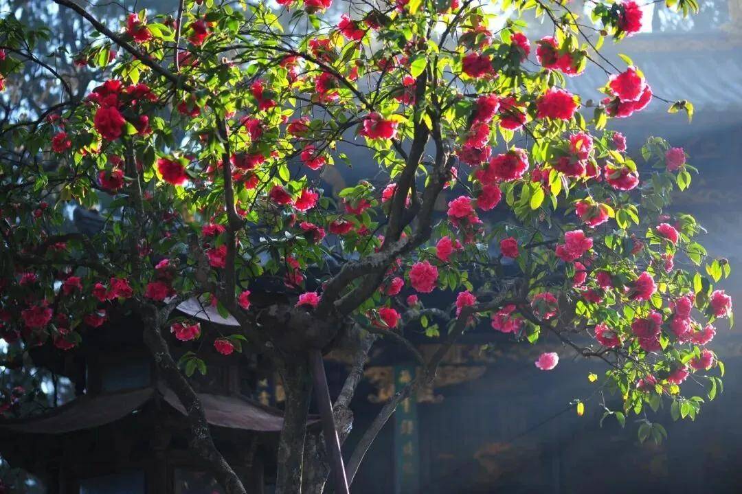 华亭寺、太华寺里 百年古梅枝丫虬曲玉兰在红墙灰瓦间亭亭绽放,山茶则以浓烈的红映衬着飞檐斗拱这里的花开得不喧哗却自带一股庄重与禅意,仿佛春天是悄声踏进寺门的。
